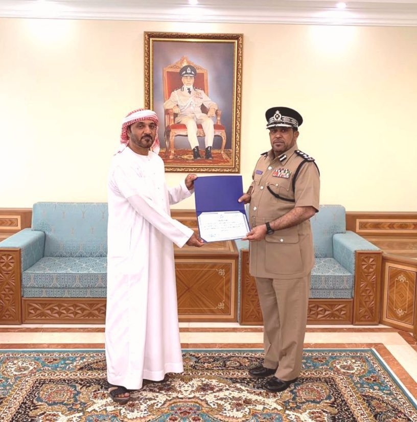 قالت شرطة عمان السلطانية على حسابها الرسمي في ” تويتر” أن العميد/ محمد بن خلفان الدغيشي قائد شرطة محافظة البريمي قام بتكريم مواطن نظير تعاونه مع الشرطة في الإبلاغ والكشف عن بعض القضايا.