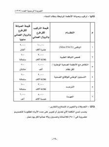 المادة الثانية : لا تشمل القيم والأثمان الواردة بالجدول المرفق رخص قواعد البيانات اللازمة لتشغيل نظام الشفاء .