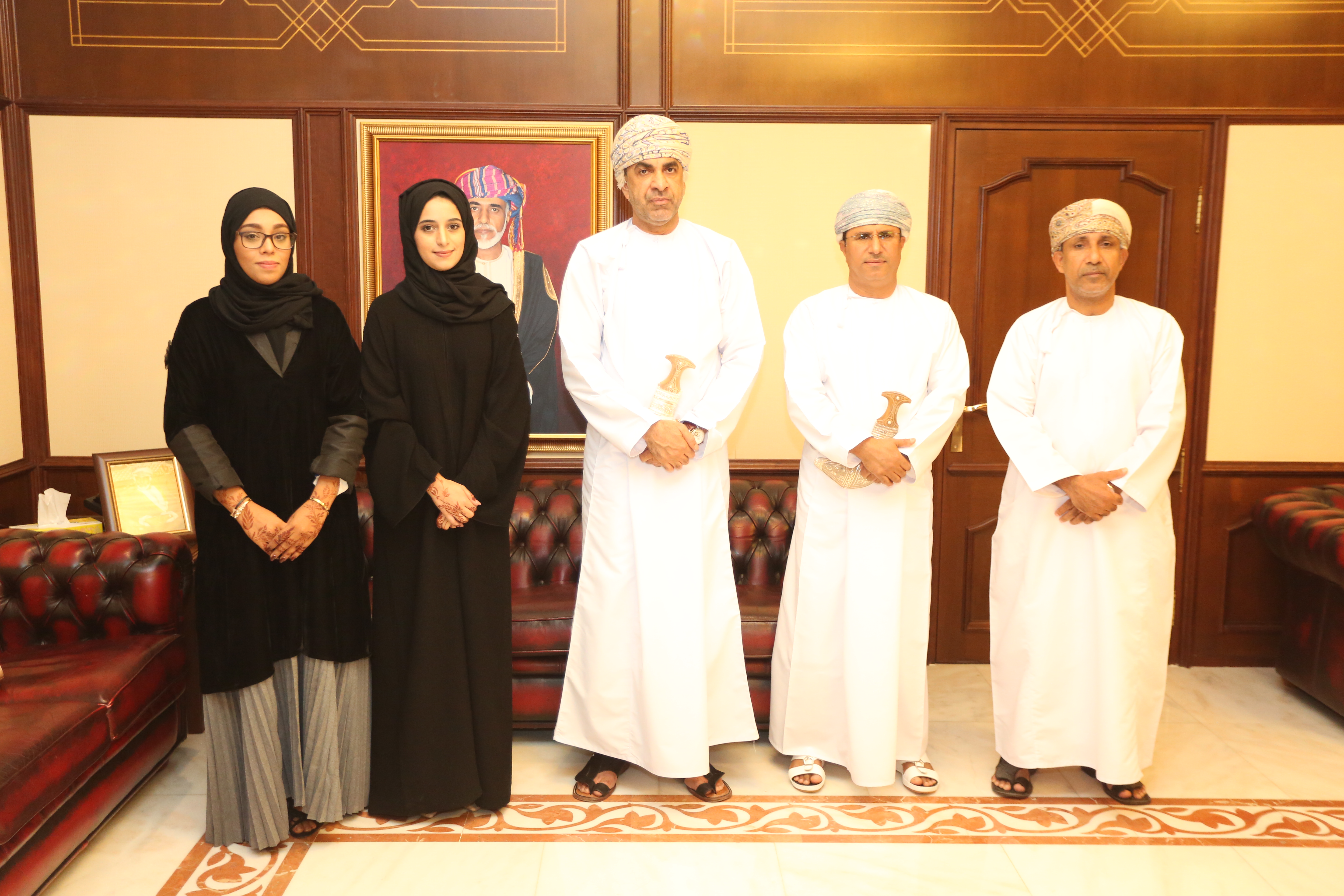 كرم معالي الدكتور حمد بن سعيد العوفي، وزير الزراعة والثروة السمكية بمكتبه صباح اليوم المخترعتين تسنيم بنت محمد الداودية وسلمى بنت سالم السديرية لحصلوهن على المركز الاول والميدالية الذهبية مع مرتبة الشرف على اختراعهن” إنتاج الزيت”.