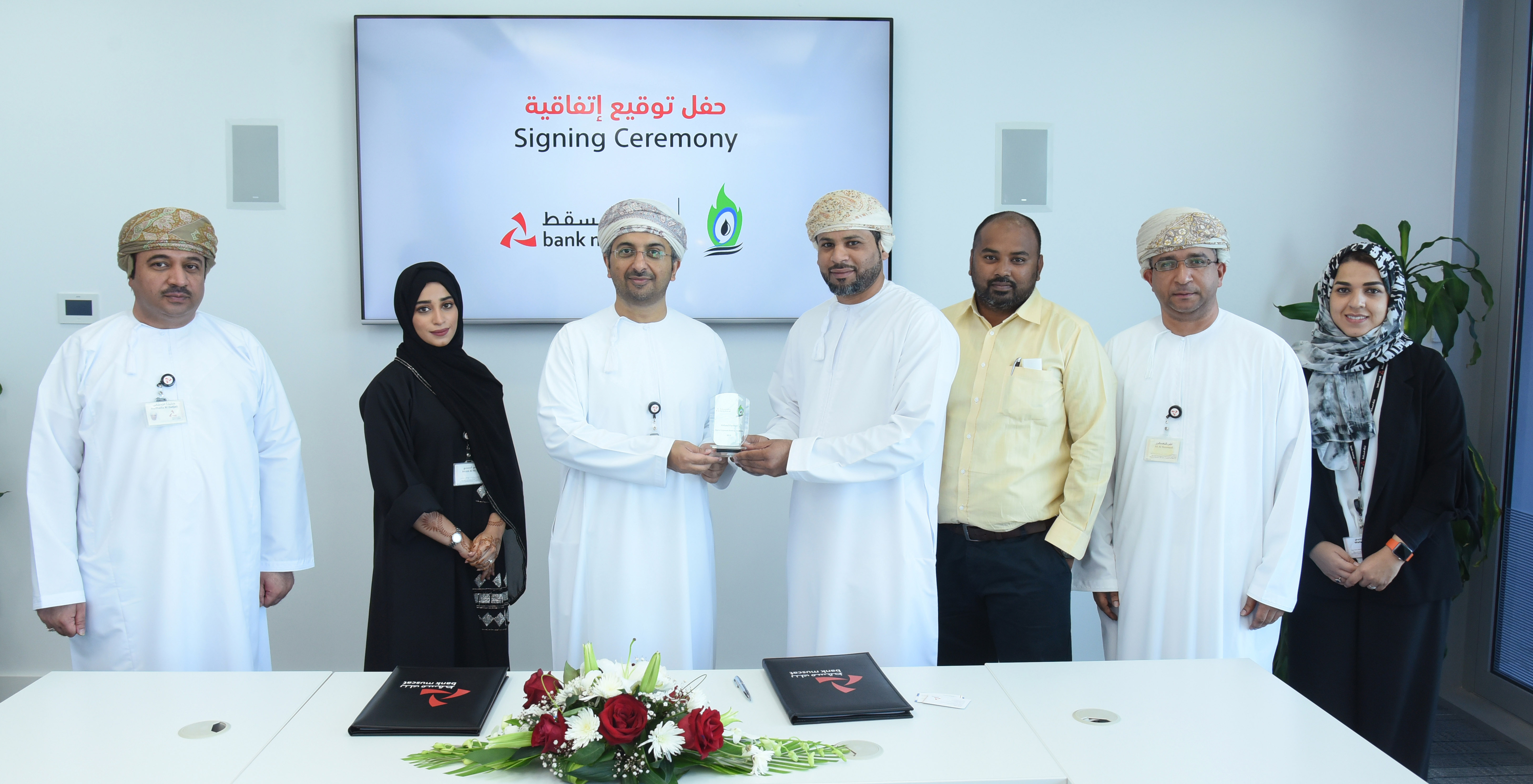 ترجمة لرؤية بنك مسقط “نعمل لخدمتكم بشكل أفضل كل يوم” يواصل البنك تحقيق نجاحات وإنجازات في مجال تقديم الأعمال المصرفية للمؤسسات الحكومية وللشركات بشكل عام وتقديم الخدمات الإلكترونية بشكل خاص حيث وقع البنك مؤخراً اتفاقية مع مجموعة الرموز الوطنية و التي تهدف إلى الاستفادة من الحلول الرقمية المتاحة في مجال تقديم مختلف الخدمات والتسهيلات المصرفية من خلال منصة الخدمات المصرفية للشركات التابعة لبنك مسقط ،وبهذه المناسبة احتفلت المؤسستان بالتوقيع على الاتفاقية، حيث وقع كلا من طارق عتيق بن عبد المعيد ، نائب مدير عام الخدمات المصرفية التجارية والحكومية ببنك مسقط ، و فهد بن صالح الساحب ، مدير عام مجموعة الرموز الوطنية، على الاتفاقية وذلك بحضور عددا من مسؤولي المؤسستين.