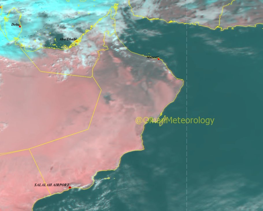 أشارت الأرصاد الجوية إلى استمرار تدفق السحب الممطرة على محافظة مسندم وتزداد الفرص لأمطار رعدية متفاوتة الغزارة على المحافظة خلال الساعات القادمة وتمتد الفرص ايضا على محافظات البريمي وشمال الباطنة والظاهرة