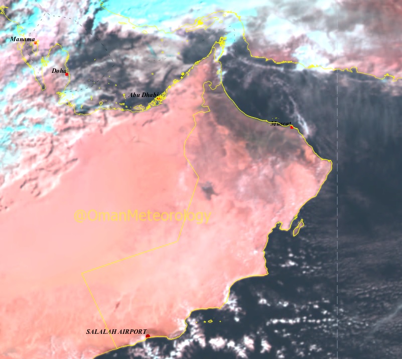 أشارت المديرية العامة للأرصاد الجوية إلى انتشار السحب على محافظة مسندم و استمرار فرص هطول أمطار متفرقة -رعدية أحيانا- مع تدفق السحب على المحافظات الشمالية للسلطنة في قادم الوقت كما تتواجد السحب المنخفضة على أجزاء متفرقة من سواحل بحر العرب.