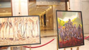 في بداية الحفل قام راعي المناسبة بالتجوال في المعرض والاستماع الى شرح تفصيلي من الفنانة طيبة الجنيبية عن معاني ورموز الرسومات التي اشتملها المعرض والتي يزيد عددها عن عشرين لوحة ابداعية متمثلة في لوحات وطنية ولوحات من بيئة البادية ورسومات منوعة للوجوه والطبيعة العمانية الاصيلة والتي من خلالها تتجلى ابداعات الأنامل العمانية في هذا المجال حيث سيستمر المعرض مفتوحا امام الجمهور لمدة ثلاثة ايام متتالية.