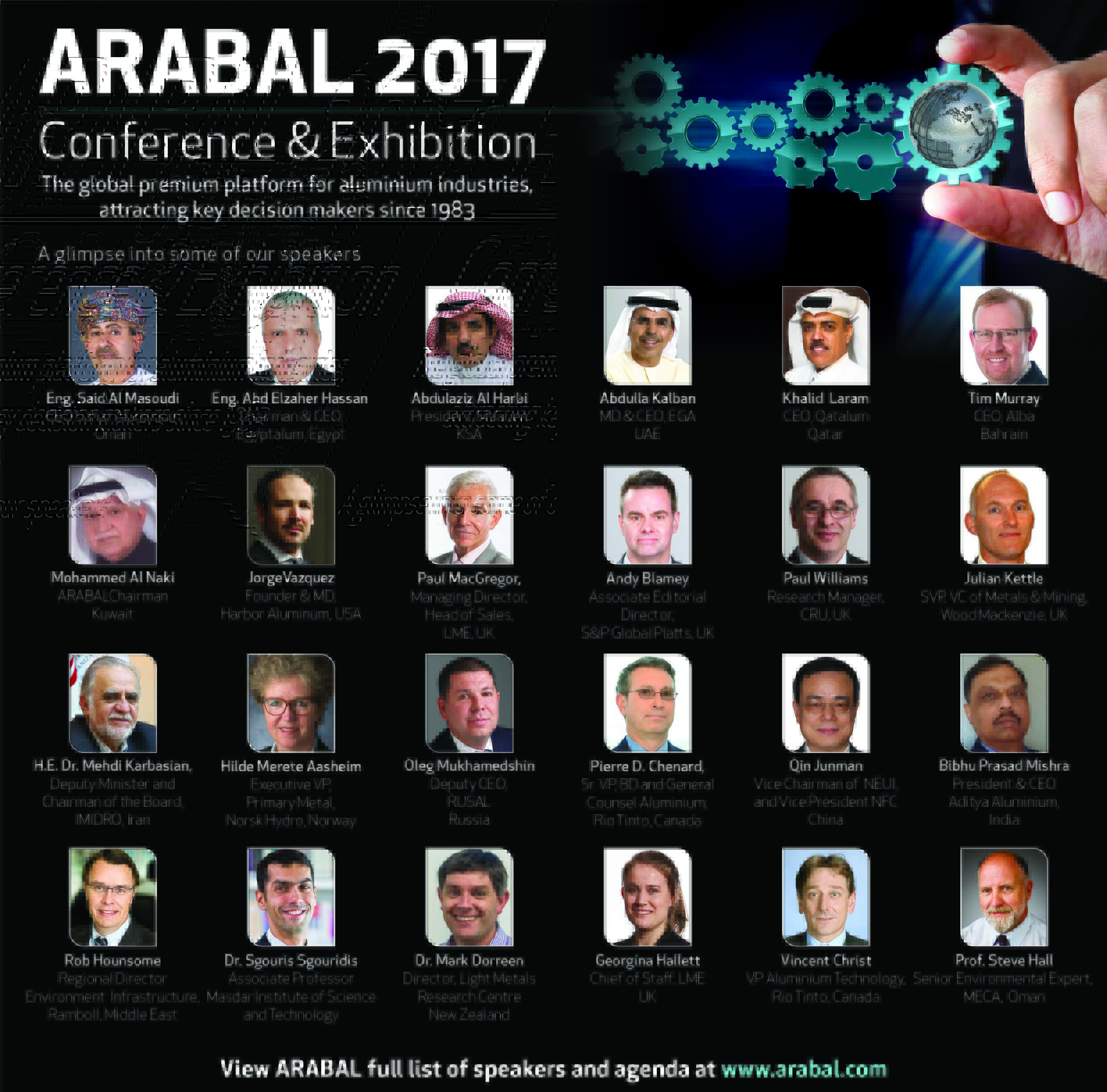وستتضمن الجلسة الرئيسية للمؤتمر مشاركة ممثلين رفيعي المستوى من عدد من الشركات المحلية والخليجية والعربية منها صحار ألمنيوم وشركة معادن للألمنيوم خليجية وعربية التي بلغ انتاجها عام 2016 ما مجموعه 5ر23 مليون طن من الألمنيوم، وهو ما يعادل 1 بالمائة من إجمالي الإنتاج العالمي (باستثناء الصين).