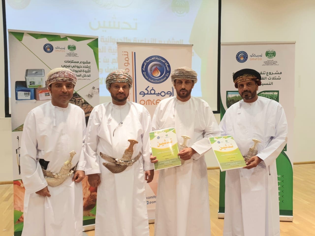 دشنت المديرية العامة للزراعة والثروة الحيوانية بمحافظتي جنوب وشمال الشرقية ممثلة بدائرة التنمية الزراعية بالكامل والوافي مشاريع زراعية وحيوانية ممولة من قبل الشركة العمانية الهندية للسماد ) أومفيكو ( رعى حفل التدشين سعادة الشيخ سالم بن عبدالله المدحاني والي الكامل والوافي بحضور الدكتور عبد العزيز بن منصور الشنفري مدير عام المديرية العامة للزراعة والثروة الحيوانية بمحافظتي جنوب وشمال الشرقية .