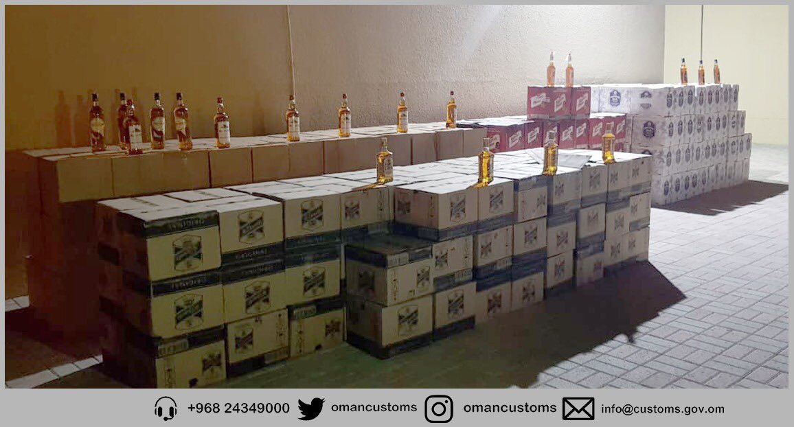 قالت جمارك عمان بأن الادارة العامة للجمارك بالتعاون مع عدد من تشكيلات شرطة عمان السلطانية تمكّنَت من مداهمة موقعين للعمالة الوافدة تستخدمهما لتخزين وبيع المشروبات الكحولية ، وضبطت أكثر من 18000 زجاجة .