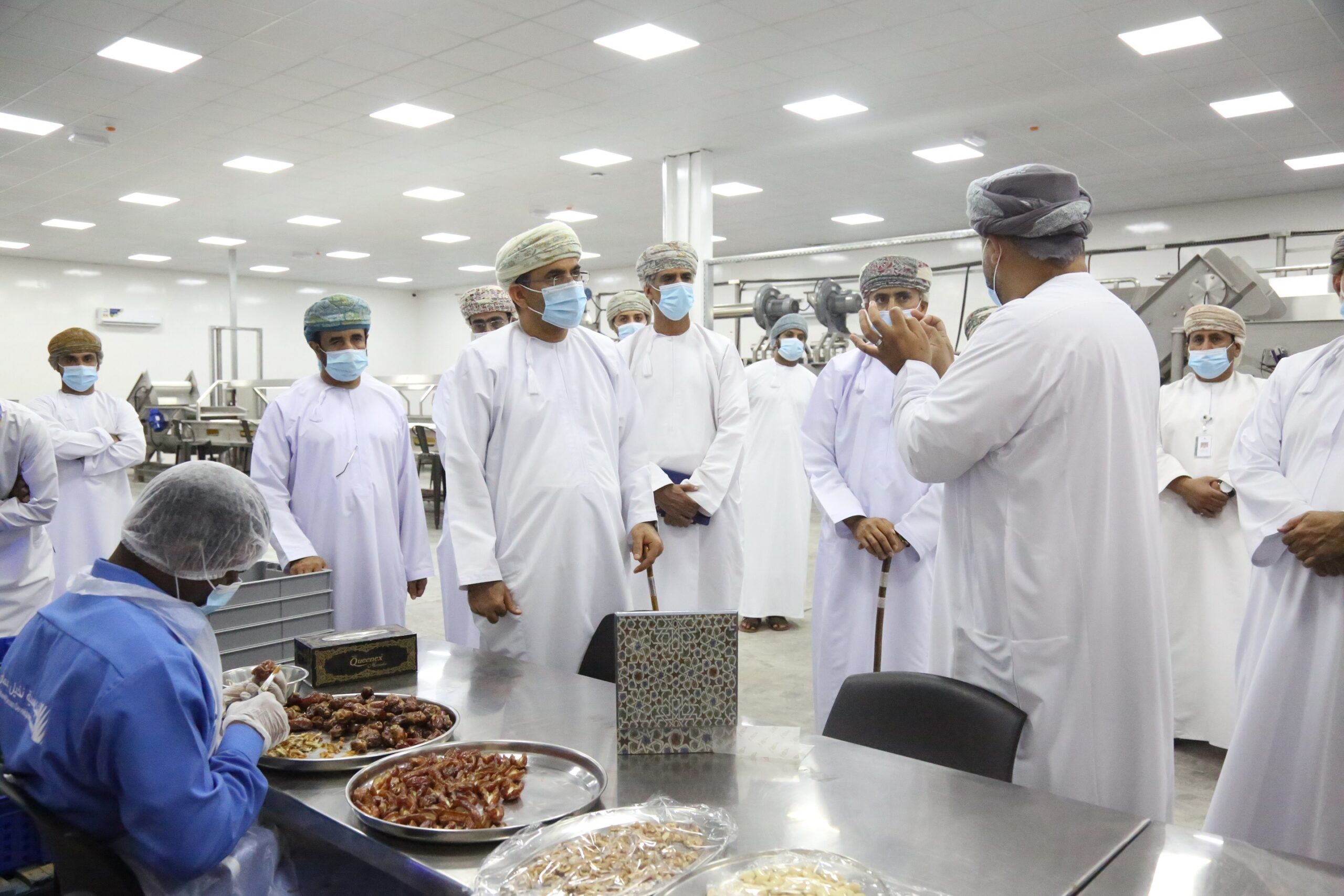قام معالي الدكتور سعود بن حمود الحبسي، وزير الثروة الزراعية والسمكية وموارد المياه ظهر أمس بزيارة تفقدية لمركز عمليات شركة تنمية نخيل عمان (قطاع إنتاج التمور) بولاية بركاء وذلك للاطلاع على عمليات المركز الذي يعتبر أحدث موقع لمعالجة وتعبئة وتصنيع التمور في السلطنة بطاقة إنتاجية تصل إلى 6000 طن سنويا من التمور، ويستخدم المركز للإنتاج التجاري، وتدريب الموظفين، واختبار المعدات ونمذجة العمليات استعدادا للانتقال إلى الموقع الرئيسي بالمجمع الصناعي للتمور بولاية نزوى الذي تتواصل الأعمال الإنشائية فيه ومن المتوقع اكتماله العام القادم وبدء العمليات التشغيلية به في موسم حصاد التمور لعام 2021 وتقدر طاقته الإنتاجية السنوية 30 ألف طن من تمور المائدة بالإضافة إلى عمليات التصنيع للمنتجات الغذائية القائمة على التمور.