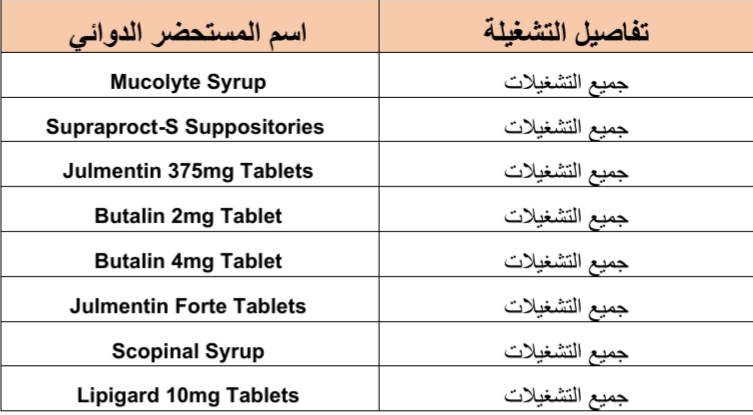 وعليه فقد تم التعميم على الوكيل المحلي للشركة المنتجة باتخاذ اللازم حيال سحب ووقف صرف هذه الأدوية من جميع مؤسسات الرعاية الصحية بالقطاع الصحي الحكومي والخاص.