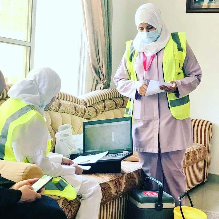 فقد تم حصر الأعداد مسبقا من قبل ممرضات صحة المجتمع قبل البدء بعملية التحصين الفعلية وذلك من أجل التأكد من الأشخاص الذين أخذوا اللقاح سابقا ومن لديه الرغبة في أخذ التطعيم حيث تم حصر جميع الأعداد وتم تجهيز فريق متكامل يتكون من طبيب وممرضة صحة المجتمع وممرضة التحصين وسيارة إسعاف.