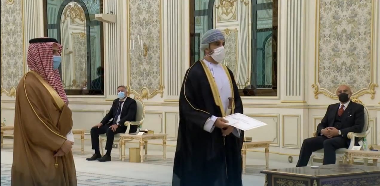 تسلم خادم الحرمين الشريفين الملك سلمان بن عبد العزيز آل سعود عبر الاتصال المرئي أوراق اعتماد صاحب السمو السيد فيصل بن تركي آل سعيد سفيرا معتمدا ومفوضا لـ السلطنة لدى المملكة العربية السعودية.