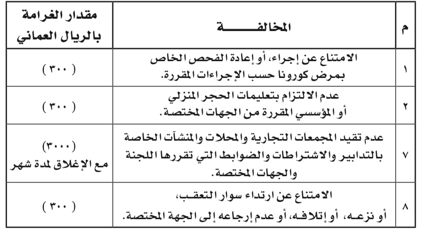 المــادة الأولى : يستبدل بالبنود (1) و(2) و(7) و(8) من ملحق ضوابط التعامل مع المخالفين لقرارات اللجنة العليا المعنية ببحث آلية التعامل مع التطورات الناتجة عن انتشار فيروس كورونا (كوفيد 19) المرفق بالقرار رقم 151/2020 المشار إليه، ما يأتي: